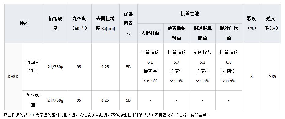 產(chǎn)品一面為抗菌可印層,另一面為防水紋層??咕捎涌梢杂∷⒐夤袒驘峁袒湍?,選用銀離子抗菌材料,無(wú)毒環(huán)保、抑制細(xì)菌的生長(zhǎng)繁殖、按ISO22196進(jìn)行抗菌性能測(cè)試,其抗菌率達(dá)99.99%以上。防水紋層,防止水紋效果優(yōu)異。